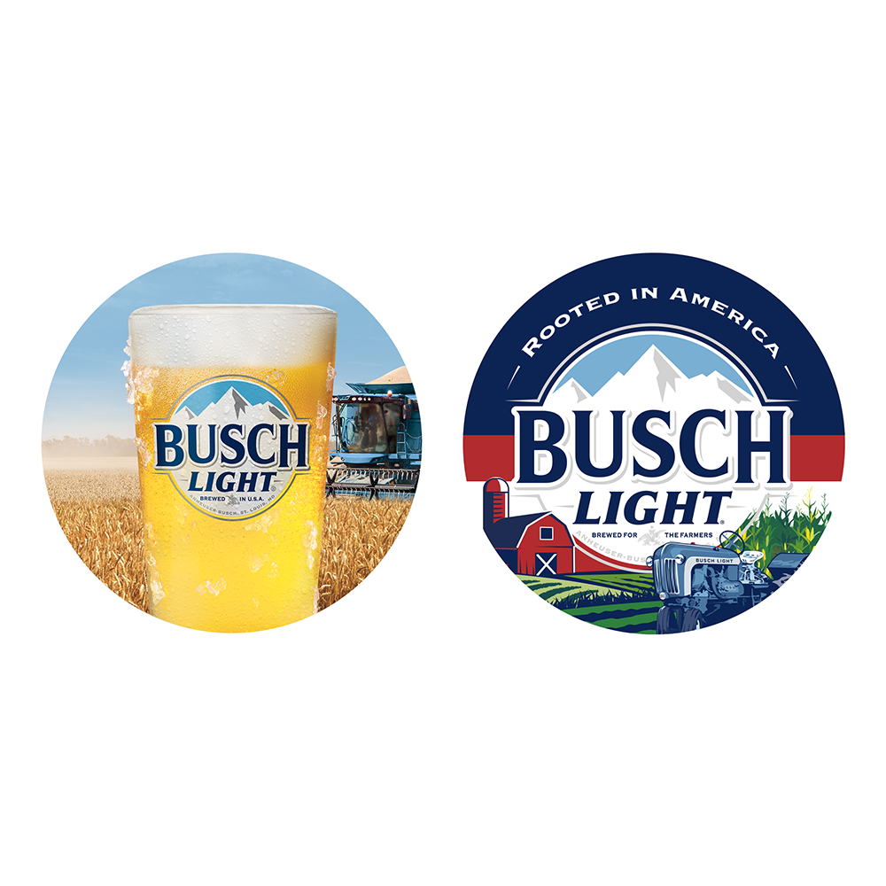 Busch Light Round Farming Cardboard Coasters Features a Farming Scene on one side and the Busch Light Logo on the Other. There is 125 Cardboard Coasters per pack